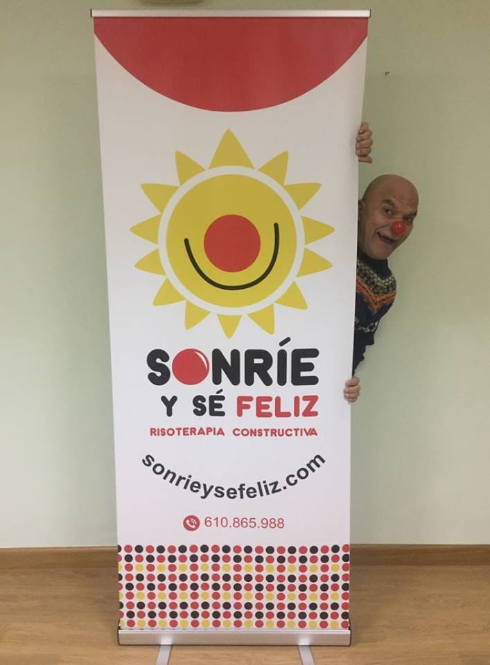 Sonríe y sé feliz es una entidad que se encarga de dar talleres relacionados con la risoterapia y los beneficios de la risa. Necesitaban un re-branding y creación de aplicaciones para crear una imagen potente y positiva de la marca por lo que me encargaron tal labor.
