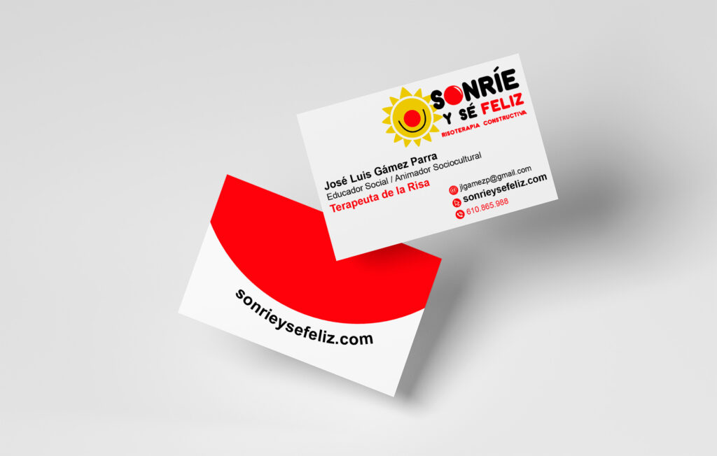 Se diseñaron diferentes materiales para la marca, tales como tarjetas de visita; flyers para poder dar a conocer los servicios que presta la empresa y realizar acciones promocionales; o un roll up con el que ponemos en valor la imagen de marca de Sonríe y sé feliz a través de un soporte de gran tamaño para que todos sepan quién realiza la actividad cuando la vean en acción.