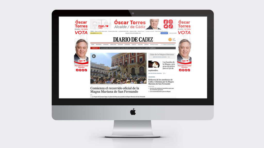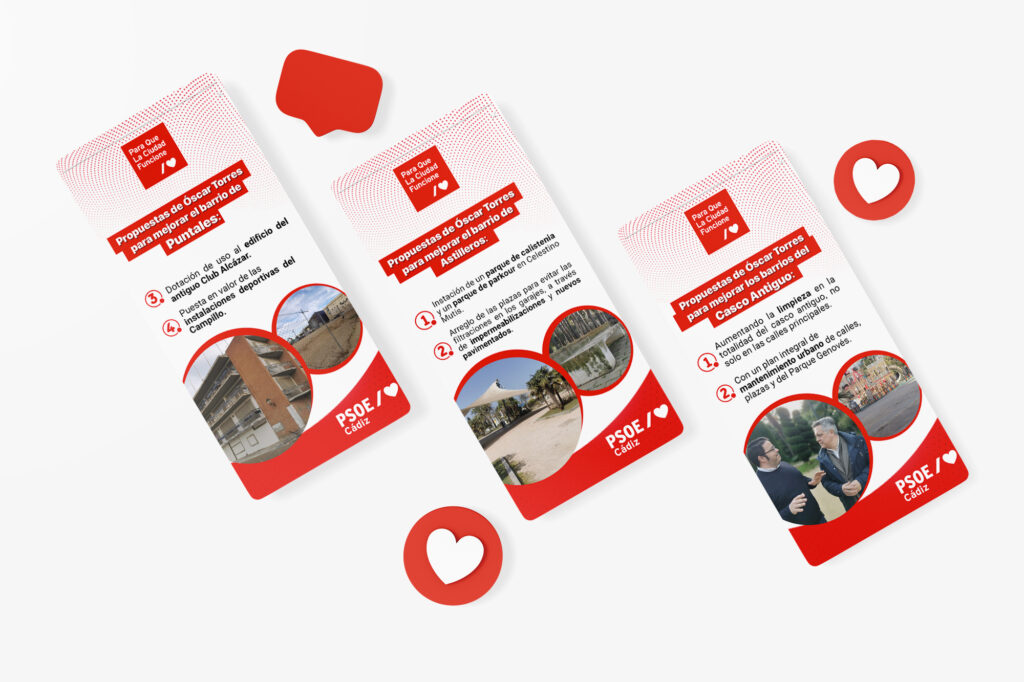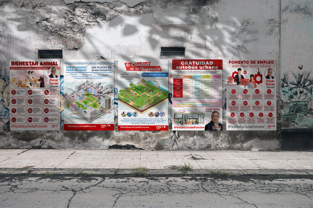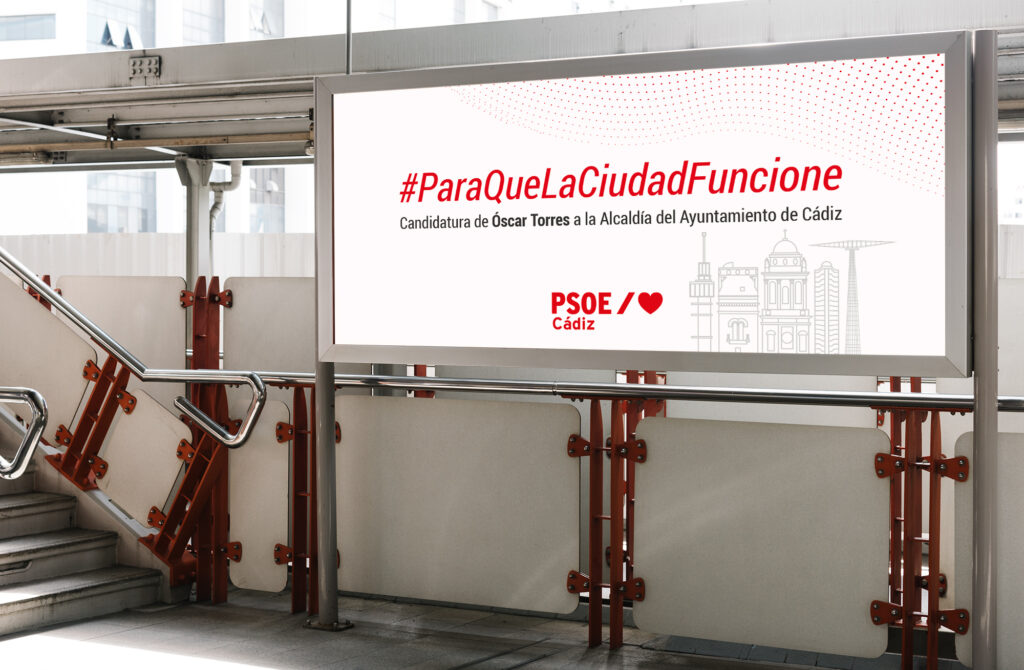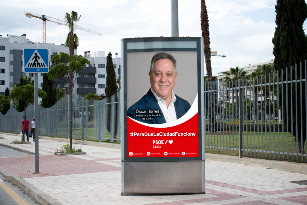 El PSOE de Cádiz presentó como candidato a las elecciones municipales del 28 de mayo de 2023 a Óscar Torres, quien depositó su confianza en mí para la elaboración de diferentes materiales de su campaña electoral, tanto en soportes online como offline.