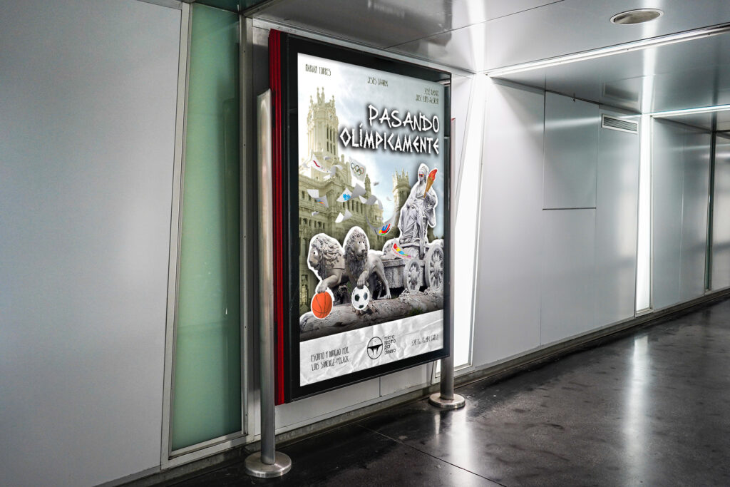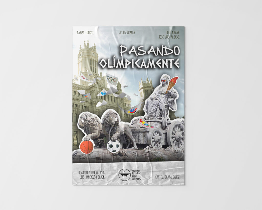 Este trabajo parte como un encargo de Luis Sánchez-Polack, guionista de cine, teatro y televisión, quien necesitaba la realización de un diseño para promocionar su obra de microteatro «Pasando Olímpicamente». La misma trata de la insistencia de Madrid por ser sede de los Juegos Olímpicos, una persistencia que existe aún en la época en la que se ambienta este microteatro, el año 2048. La obra fue representada en el «Microteatro por Dinero», ubicada en la calle Loreto y Chicote 9 de Madrid.