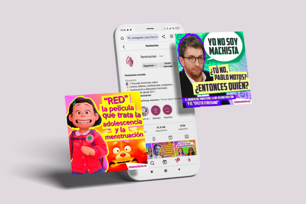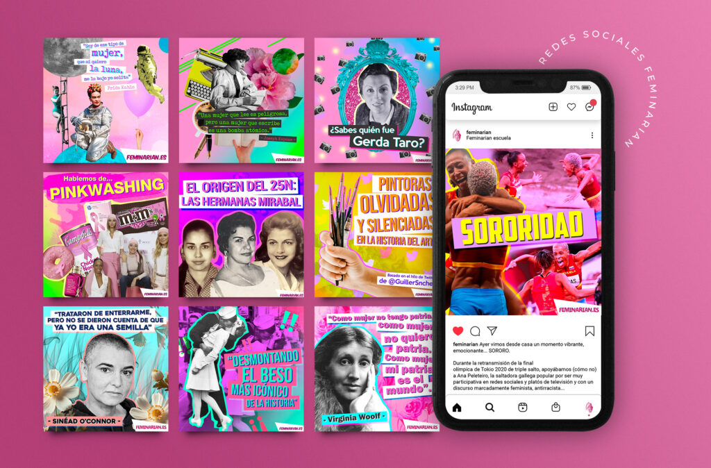 Como responsable de las redes sociales de Feminarian podríamos distinguir tres bloques importantes en el trabajo realizado: la creación de contenido; la redacción; y la dirección artística, donde englobaríamos el diseño de posts y la edición de vídeos para reels.