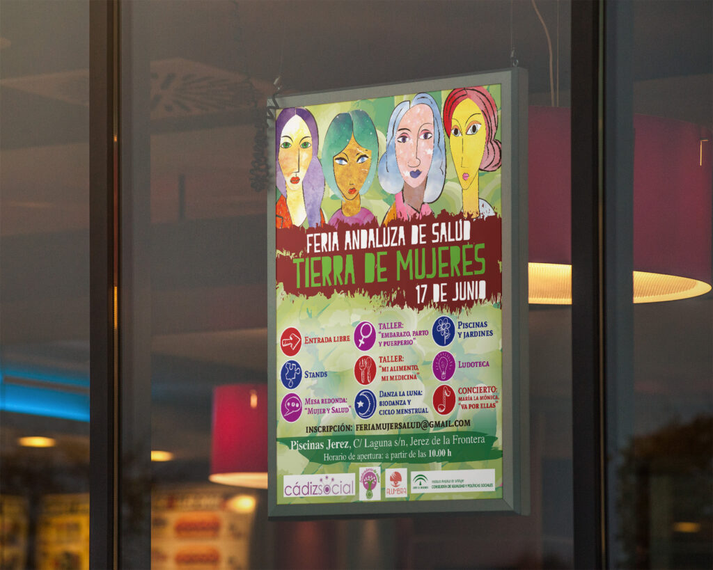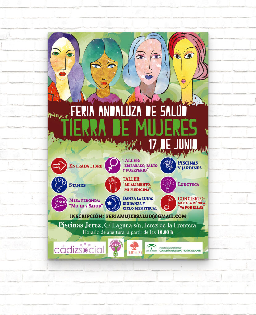 Sembradoras de Salud es una asociación sin ánimo de lucro formada por un equipo multidisciplinar de mujeres: enfermeras, madres, fisioterapeutas, psicólogas, cuidadoras, periodistas, educadoras, etc., que comparten una misma formación como agentes de salud desde una perspectiva de género y holística. Con motivo de la celebración de la Feria Andaluza de Salud 2017, junto a otras entidades colaboradoras, Sembradoras de Salud necesitaban la creación de un cartel que comunicara la feria y sus distintas actividades.